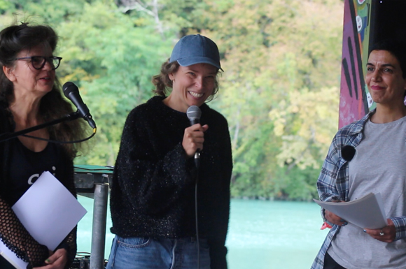 Heike Fiedler, Raphaëlle Lacord (modération) et Maryam Jafari Azarmani © video: Liudmila Ruslanova, videostill: Heike Fiedler